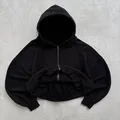 00’s Heavy weight black blank zip up boxy hodie