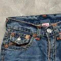 item (s) : 1990’s - True Religion Flare Jeans Big Stitch Rainbow LOGAN SUPERT Lebar Pinggang : 40cm = lingkar 80cm Panjang : 112cm Open Leg : 25cm Size : 30
