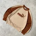 1990s Vtg Puma Center Embroidery Logo Light Brown Sweatshirts