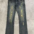 2000s K.U.I Japanese denim mud wash glitter paint distressed