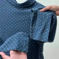 lebar dada: 92-112 cm panjang: 59 cm size: L turtleneck, non heattech, dark teal pekat, motif polkadot, good condi & like new.
