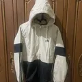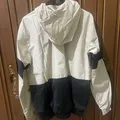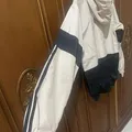 This is an Adidas Essentials 3-Stripes windbreaker jacket, in a black and beige colorway. LD : 110cm P : 70cm