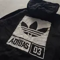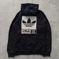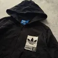 Adidas original zip-up hoodie in black with a white logo patch