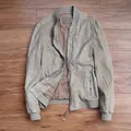 Kulit domba mulus warna coklat susu ukuran L bomber suede domba Lingkar dada 112 ,Panjang 68 Bahu 48 ,Lengan 67