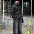 &denim black retro washed baggy jeans