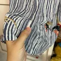 kondisi 85% masih cakep . cm pake 3xan aja . dipake jalan jg masih oke . bahan tidak terlalu premi tp masih oke ya . bagian putih bahan kaos adem bs melar (agak nerawang) . bagian yg garis" katun adem (aman ya tidak nerawang) . mines ada noda merah dibagian depan bawah yg aku tunjuk difoto . masih oke si karna ga terlalu ketara . jual apa adanya . harga netnot .