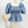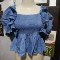 atasan Sabrina smoke bahan denim Bangkok fashion ld 85-95 PJ 50