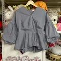 kondisi 95% kaya baru . cm sx pake . bahan katun adem . lengan ngebalon . balon lengan ada lapisan lagi . jadi ga dipake pun dy ngembang balonnya . tartan list warna biru ya . bagian blkg kancing bungkus" hidup . dipake keren , simpel tp keliatan mewah . dl beli ini mahil dimangdu . harga netnot .