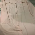 Tunik jarang dipakai, kancing lengkap semua, ada 2 saku di depan. Bahn lembut tapi agak nerawang ya. Panjang sekitar lutut. LD 96 PB 90