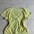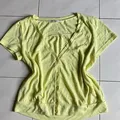 Atasan wanita warna kuning pastel, lengan pendek dengan kancing depan dan model V-neck. Bahan lembut dan ringan, nyaman dipakai. Kondisi bagus, tidak ada noda atau cacat. Good for beach or hang out fits.