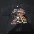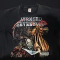 Kaos band Avenged Sevenfold (A7X) dengan artwork ikonik album City of Evil. Desain depan menampilkan ilustrasi khas A7X yang detail dan bold, sedangkan bagian belakang menampilkan logo Deathbat klasik. Cocok untuk penggemar metal, kolektor band tee, maupun pecinta fashion streetwear/vintage.