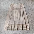 Sentuhan romantic vintage khas Axes Femme Japan, warna beige lembut dengan lace floral di dada dan hem bawah.
