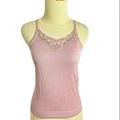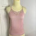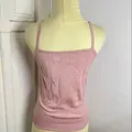 baby pink ribbed knit tanktop with beads vintage