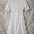 [READY PRELOVED] • • • Pemakaian Pribadi : 2 Kali Brand : Tidak ada Merk Ukuran : M Warna : Putih gading/Broken white Panjang : - Minus : Tidak ada minus. Tidak ada robekan. Tidak ada warna luntur Bahan : Katun bordir (Eyelet)