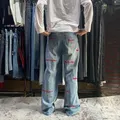 Baggy Jeans Y2k Blue Wash Embidered