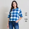 Baju blouse pendek kotak biru putih