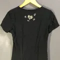 Kaos lengan pendek motif bunga di bagian bawah ada renda
