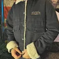 warna utama hitam denim dengan kombinasi sherpa pada bagian dalam jaket, secara keseluruhan bagus dan siap pakai