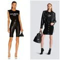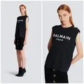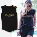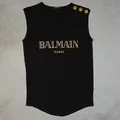 Balmain Black Metallic Gold Logo Lion Buttons Tank Top