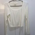 Kondisi: Preloved – masih sangat bagus, no defect Warna: Putih Model: Basic ribbed long sleeve, scoop neck Bahan: Stretchy, adem, nyaman dipakai harian Ukuran L • Panjang: 47 cm • Lingkar dada: 80–110 cm (stretchy) • Panjang lengan: 58 cm