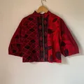 Atasan batik model croptop dengan resleting depan warna merah lD : 100 P : 50 PL: 40