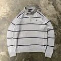 Bean Pole Striped Polo Knit Sweater Grey