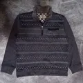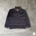 Jacket half zip dengan motif klasik dan nuansa warna gelap yang easy to match. Dilengkapi kerah hangat dan detail zipper depan, cocok dipakai santai sampai daily outfit. Bahannya terasa nyaman dan cukup hangat, pas buat dipakai harian. Kondisi 9/10, warna masih bagus dan overall masih cakep dipakai.