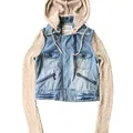 Billabong Pacsun Denim Jean Jacket Moto Biker Coat Knit Sweater 90s Top Womens XS Panjang Lebar Original Used very very good condition