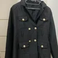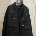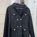 black double-breasted tweed jacket