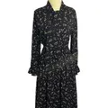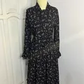 Black Floral Midi Dress Long Sleeves