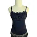 Black Lace Trim Tanktop Sheer Hem