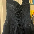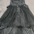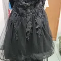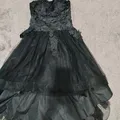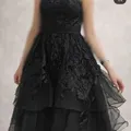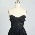 Black prom dresses strapless party dress Lace applique