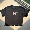 black ribbon bow ruffle crop top