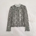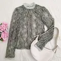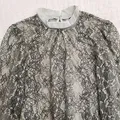 Atasan full lace premium dari brand Jepang, Lily Brown. Detail motif brukatnya sangat halus dan mewah. Model kerah tinggi (mock neck) memberikan kesan elegan.