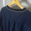 Blouse katun navy v neck lengan pendek variasi manik