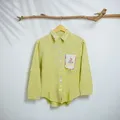 Blouse Kemeja Kasual Wanita Hijau Muda | Saku Patch Bordir