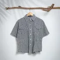 Blouse Kemeja Lengan Pendek Button-Up Kotak