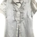 Blouse warna abu-abu salur silver, brand The Executive, beli dari original store. Size S, LD 84 PB 60 Kancing lengkap, masih ada inner asli bawaan. Baru 2x pakai tapi ada noda karena terlalu lama disimpan di lemari, butuh cuci.