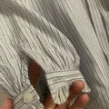 Blouse kantor warna baby blue motif salur kecil dengan aksen ruffle pada kerah dan lengan baju. Brand The Executive original store. Size S, LD 84 PB 60 Kancing aman, baru 2x pakai, no minus.