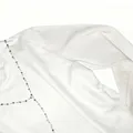 bahan: pique knit warna: putih natural uk: M panjang baju depan: ±50cm panjang baju belakang(dg rumbai):±60cm lebar dada:± 40cm panjang lengan:± 50cm baru di pakai 2 kali. ada noda titik di bagian atas belakang baju