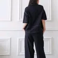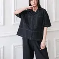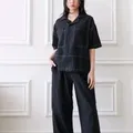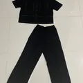 1 set celana dan atasan Kemeja lengan pendek dan celana kulot pinggang karet Hanya 1x pemakaian Bahan linen