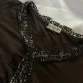 with velvet + sequin ruffle trim along neckline and front bust 88-100 length 52