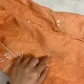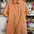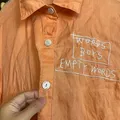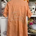 bahan katun adem enak pake . warna masih cantik . tulisan semua bordir . kancing cetet depan aman . (-)kotor dikancing n ada kotor jg didekat kancing dpn . smaa (-)ada tempel warna tipis" samar . kantong kiri kanan .