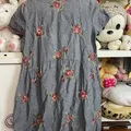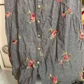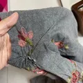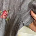 bahan katun adem enak pake . bunga" motif itu kaya jaitan benang wol nimbul . kancing depan hiasan . mines dibagian jaitan keti kiri kanan kelepas jait . sama ada titik kuning penyimpanan samar .
