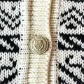 This cardigan comes in an off-white base color, beautifully adorned with an all-over pattern. The embossed buttons add a refined, elegant touch to its design. In very good condition a piece we highly recommend.