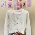 Cardigan rajut cable putih crop tebal kepang