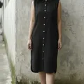 bkk casual dress hitam polos beb ini bagus bangets super modis kalo di pake model nya simple bahan jatuh kancing sampai bawah bisa di buka ld 102 p 102 kondisi 10/10 no minus bagus banget beb bersih wangi siap pakai