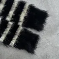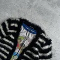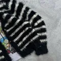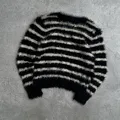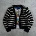 Black Sue Cardigan Striped Pattern Mohair Fuzzy Grunge Knit Sweater