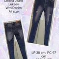 Celana jeans wanita Lukevv warna Denim all size, dengan ukuran : Lingkar Pinggang 38 cm dan Panjang Celana 97cm