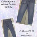 Celana jeans wanita warna Denim size 30, dengan ukuran: Lingkar Pinggang 40 cm dan Panjang Celana 90 cm